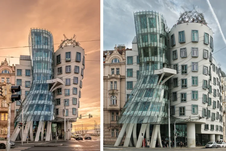 Breaking away from Prague’s traditional architecture, the modern and quirky Dancing House, nicknamed “Fred and Ginger” after the iconic dancing pair, offers a striking contrast to the city’s historic skyline. Designed by Frank Gehry and completed in 1996, this architectural wonder stands out with its curvy lines and glass façade. It includes offices, a restaurant, and a rooftop bar with a panoramic view of the city. The Dancing House showcases Prague’s creative side and is a must-visit if you love modern design and photography.